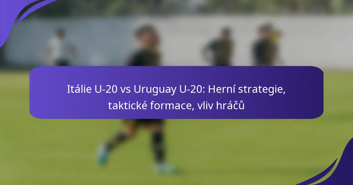 Itálie U-20 obvykle používá formaci 4-3-3, zatímco Uruguay U-20 často využívá nastavení 4-2-3-1. Tyto taktické formace formují jejich herní strategie, ovlivňují, jak každý tým přistupuje k útoku i obraně.