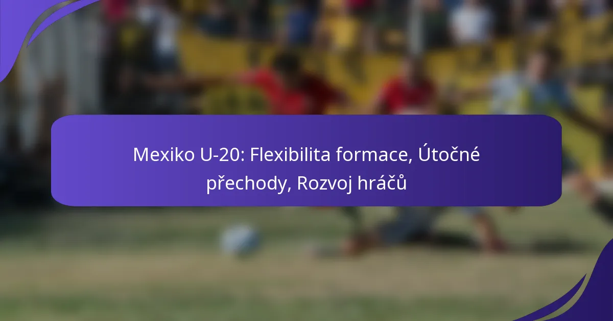 Tým Mexika U-20 často používá formace jako 4-3-3 a 4-2-3-1, které poskytují solidní obrannou strukturu a zároveň podporují útočnou hru. Tyto formace umožňují hráčům udržovat šířku a hloubku, což usnadňuje rychlé přechody z obrany do útoku.