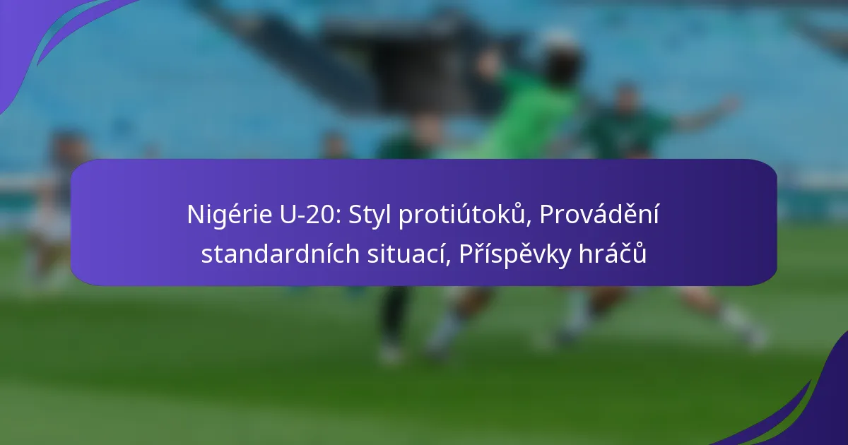 Tým Nigérie U-20 předvádí dynamický styl protiútoků, který zdůrazňuje rychlé přechody z obrany do útoku a využívá prostorů, které zanechávají soupeři. Jejich strategické provádění standardních situací dále zlepšuje jejich hru a maximalizuje příležitosti ke skórování v kritických momentech. Příspěvky klíčových hráčů jsou nezbytné pro úspěch týmu, přičemž jednotlivci excelují ve skórování, asistencích a defenzivních rolích, čímž zvyšují celkový výkon týmu.